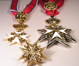Рельеф на всех знаках солидный 100%-ный "оброн". Согласен, что на перспективном ракурсе этого не видно, по приходу позолоченных вариантов (дня через 3-4)- подберу ракурс понагляднее. Задолбались мы втроем и фотки делать, и эскизы, и штампы рубить, и "калить" в ведре, и давить на латуни, и пилить,паять (припой "сварить"- тоже самим), камни, эмали... и т.д. А вообще- верхняя звезда по лучам-70 мм, а внизу правый знак ("крест Магистра") имеет толщину 7 мм. К тому же он прилично "бухтирован" (выгнут). Закрепка полноценная (не меньше 4-х "корнов" на камень, так нас учили еще при Союзе. Тем более что на выставках все технологи ювел. заводов в первую очередь кидаются смотреть в лупу камни. Упрекали пока только в одном: почему латунь и почему цирконы (Сигнити)? А на счет применения этих технологий в жизни- пока проблем не испытываем. На последней выставке вообще возникла новая "тема". Подошла тетенька- представитель ассоциации музеев СНГ. Говорит: а не хотите подумать в этой технике и именно в имитационн. материалах исполнить серию мировых и советских наград для фалеристич. музейных стендов? Они заполнены на 10%- 15% и качество ужасное. Редкие ордена (напр. Ушакова или Невского, не говоря уже о Победе) рядовые обл. музеи не "потянут", да и хранить такую коллекцию ответственное дело. А ваши знаки при тираже 100-200 ед. вполне бы приобретали по 50-60, а то и 100 у.е. Вот, мол, научно-воспитательная работа с молодежью. В общем, я не вижу ничего в этом недостойного, правда под правильный заказ.