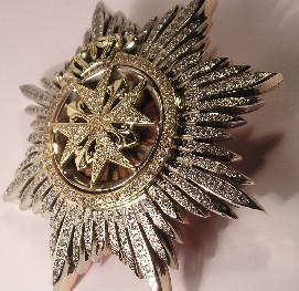 Я отнюдь не настроен против советской геральдики. По этому поводу у меня были жаркие споры с маститыми геральдистами. Правда, каждый из нас остался при своем мнении. Моя позиция: бери все лучшее у всех, добавляй свое и считай это своим достоянием. Знаю автора современного укр. ордена Богдана Хмельницкого, который убежденно мне доказывал, что новый орден лучше советского. Меня он не убедил, хотя его доводы я принял к сведению. Но сейчас не об этом. Вот, например, моя новая работа, сегодня ушла в золочение. Пример того, как можно сказать свое слово в теме ордена которому в этом году исполнится 960 лет. Думаю, это редкий вариант совмещения 8-конечной звезды с крестом, тем более с таким количеством камней (по моему больше 300, мы сбились). Ну, как придет из золочения и проэмалируем-дам более конкретные характеристики. Кстати, начали штампы по ордену Золотого руна. Вещь будет неслабая уже видно.