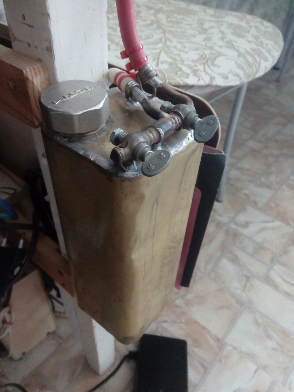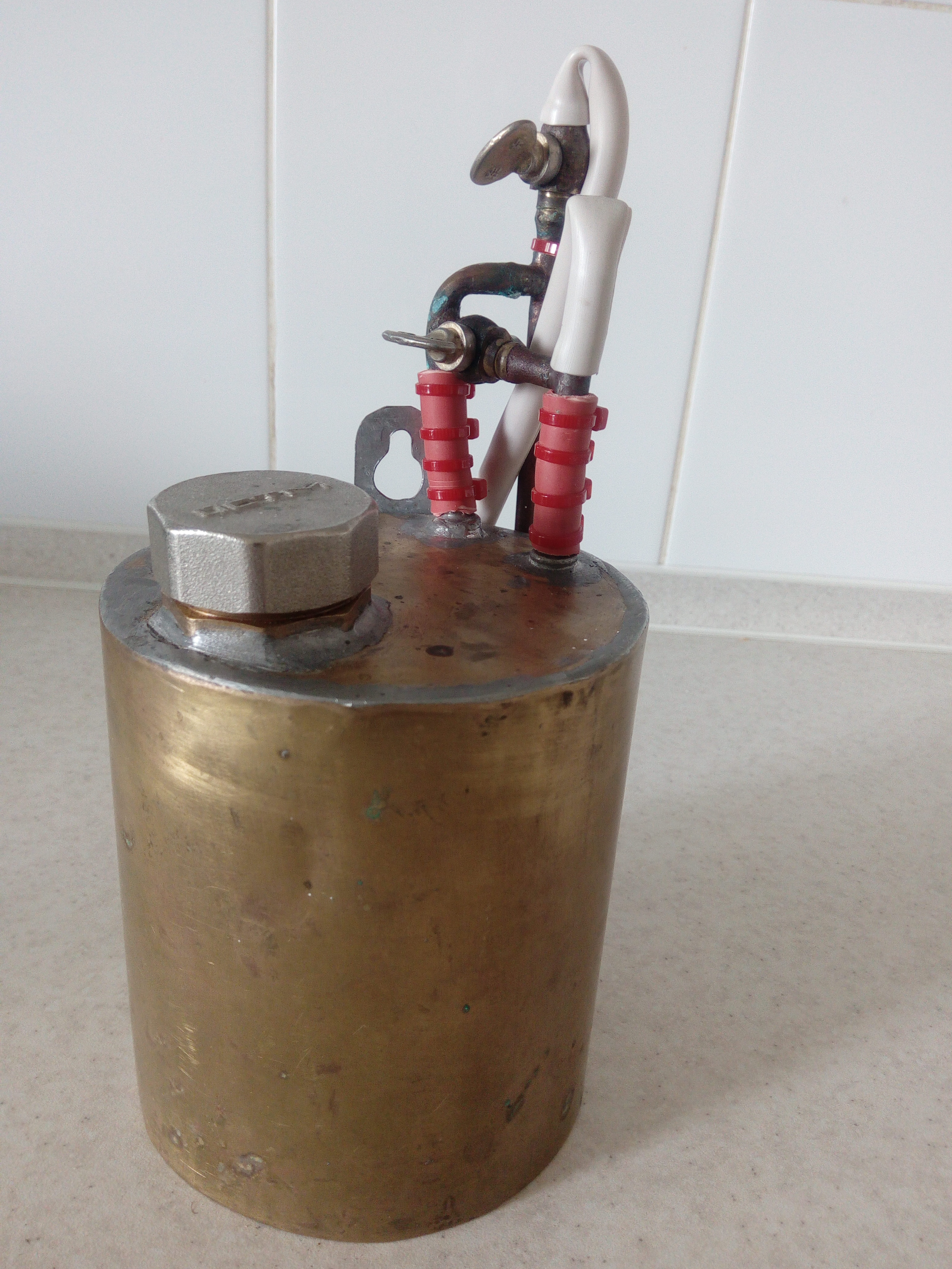 Могу изготовить под ваши "хотелки" - цилиндрический, прямоугольный, подвесной, с кранами-регуляторами, любой объем, и тд. Материал - латунь, медь. Пайка ПОС. Стоимость, в зависимости от "навороченности", от 1500 руб, плюс пересылка.