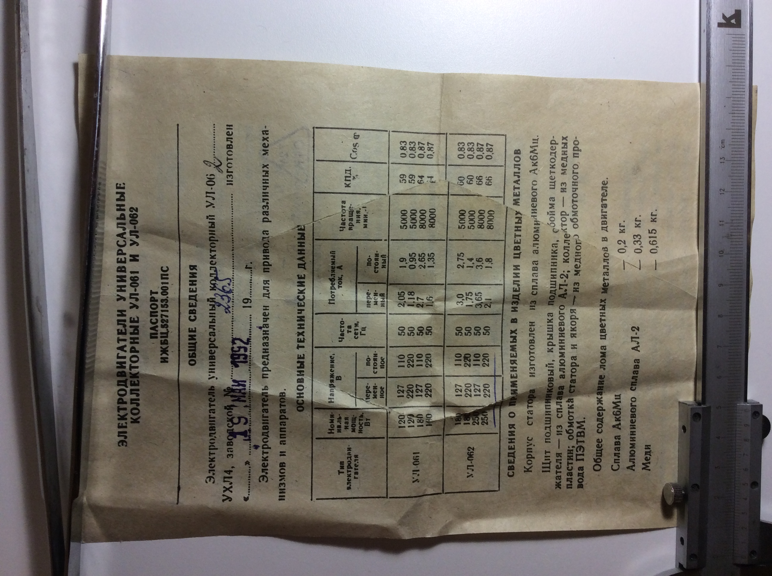 Мотор УЛ-061 (5000об., 220в);