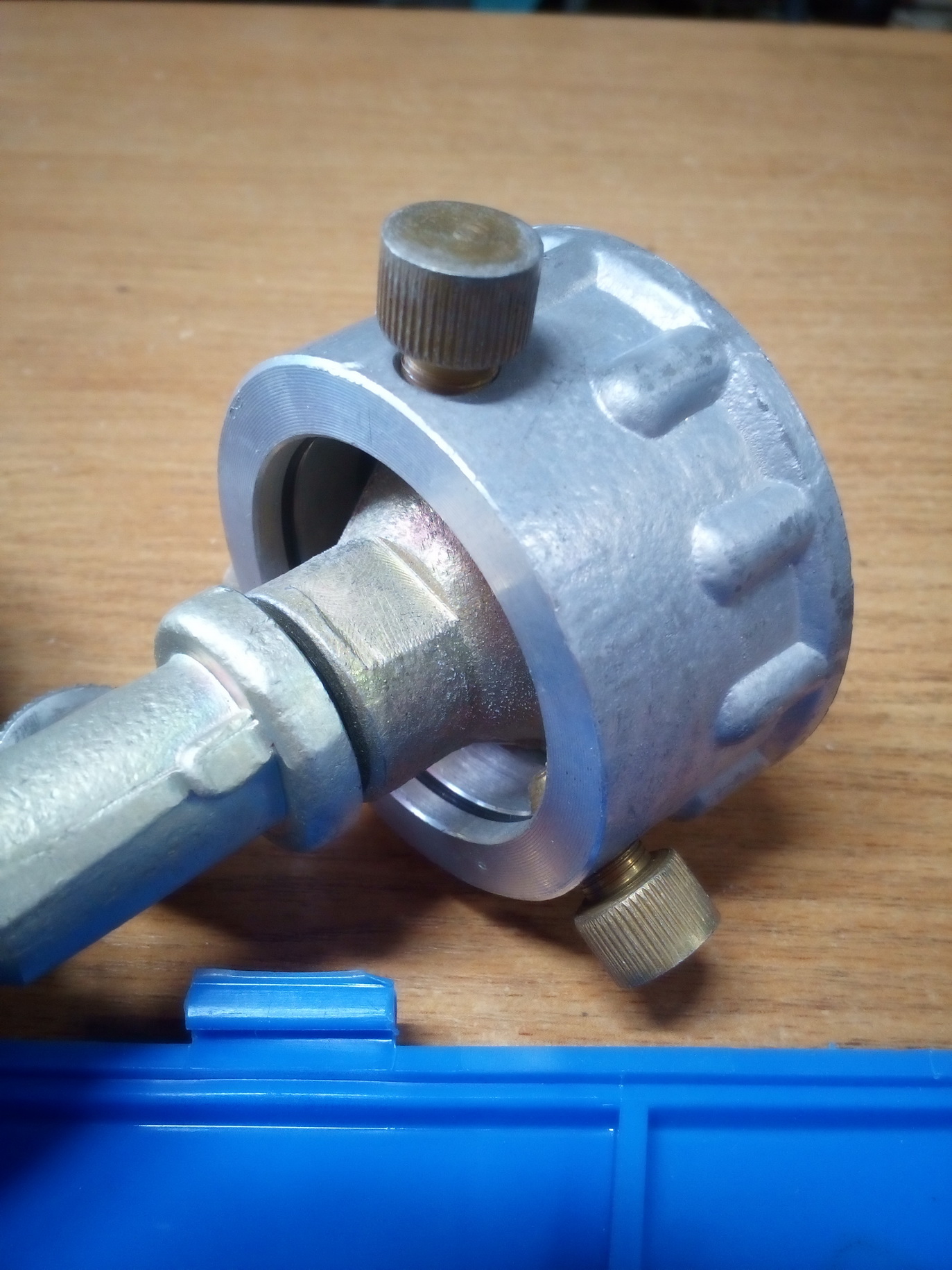 Кстати... или не очень кстати, но переходник для подключения данной горелки к баллону с резьбовым вентилем я случайно нашёл-таки: