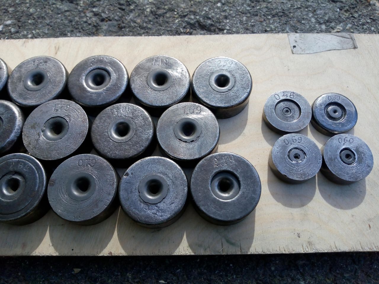 0.79; 0.90; 1.00; 1.09; 1.19(2шт.); 1.28; 1.33; 1.50; 1.60; 1.79; 1.88; 1.99; 2.10; 2.18; 2.28; 2.38; 2.48; 2.59; 2.69; 2.79; 2.88; 3.0; Маленьких 4 шт.: 0.30; 0.60; 0.69; 0.46 |