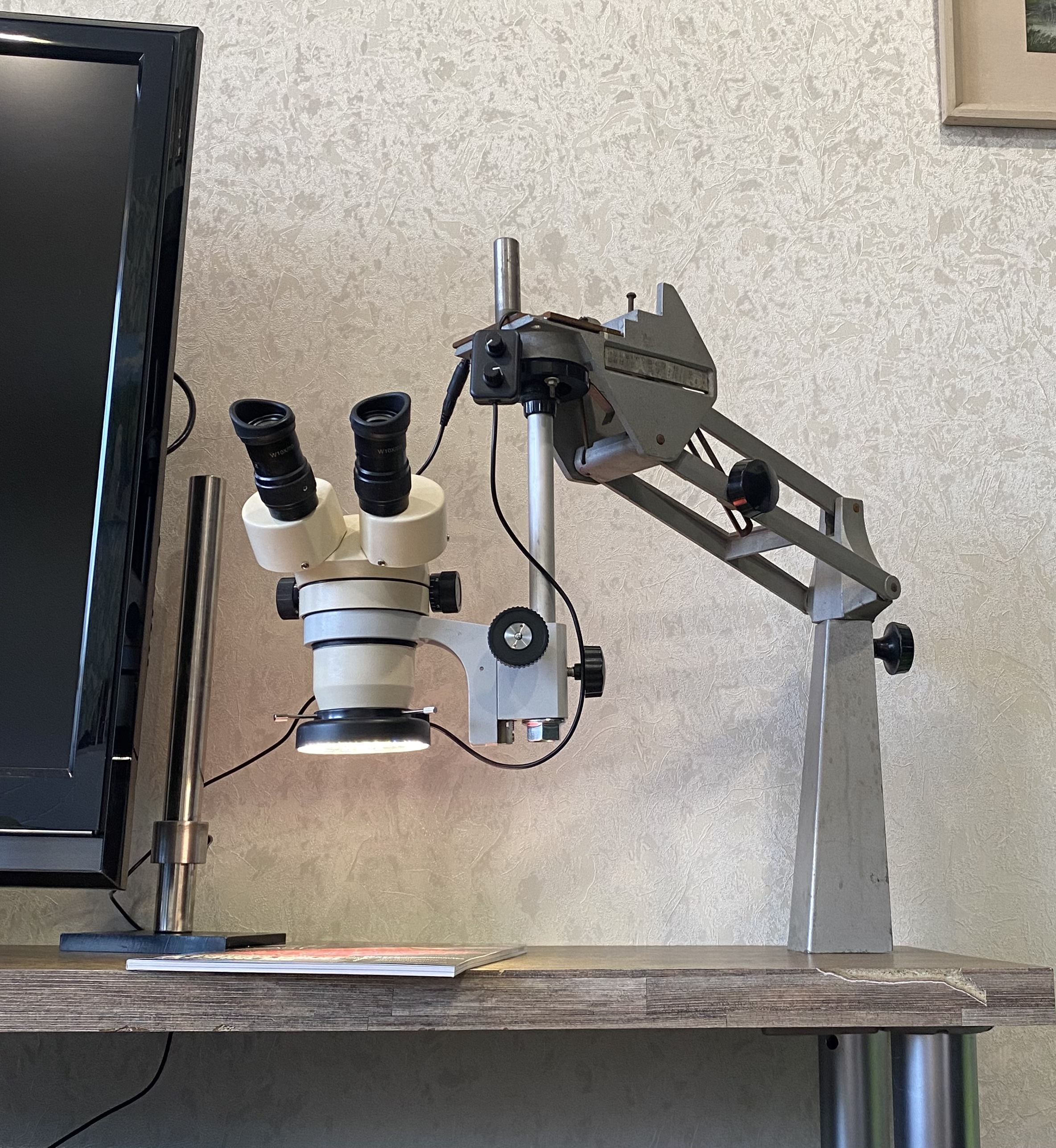 Продам микроскоп по схеме Грену. Плавное увеличение картинки. Рабочее расстояние на максимальном увеличении 13 см- на минимальном 15см. Картинка ясная четкая. Цена 23000₽ В комплекте микроскопа идёт фокусировочный механизм(крамольера), линза барлоу0,5х, окуляры 10х20, наглазники. Микроскоп No name не знаю как называется. Нет названия, вроде не китаец. Думаю он средней категории. Просветлённые только окуляры, они и подзатерты от протираний. Линза барлоу 0,5х без просветления и без затертостей чистая. Есть штатив, продам отдельно если надо цена 5000