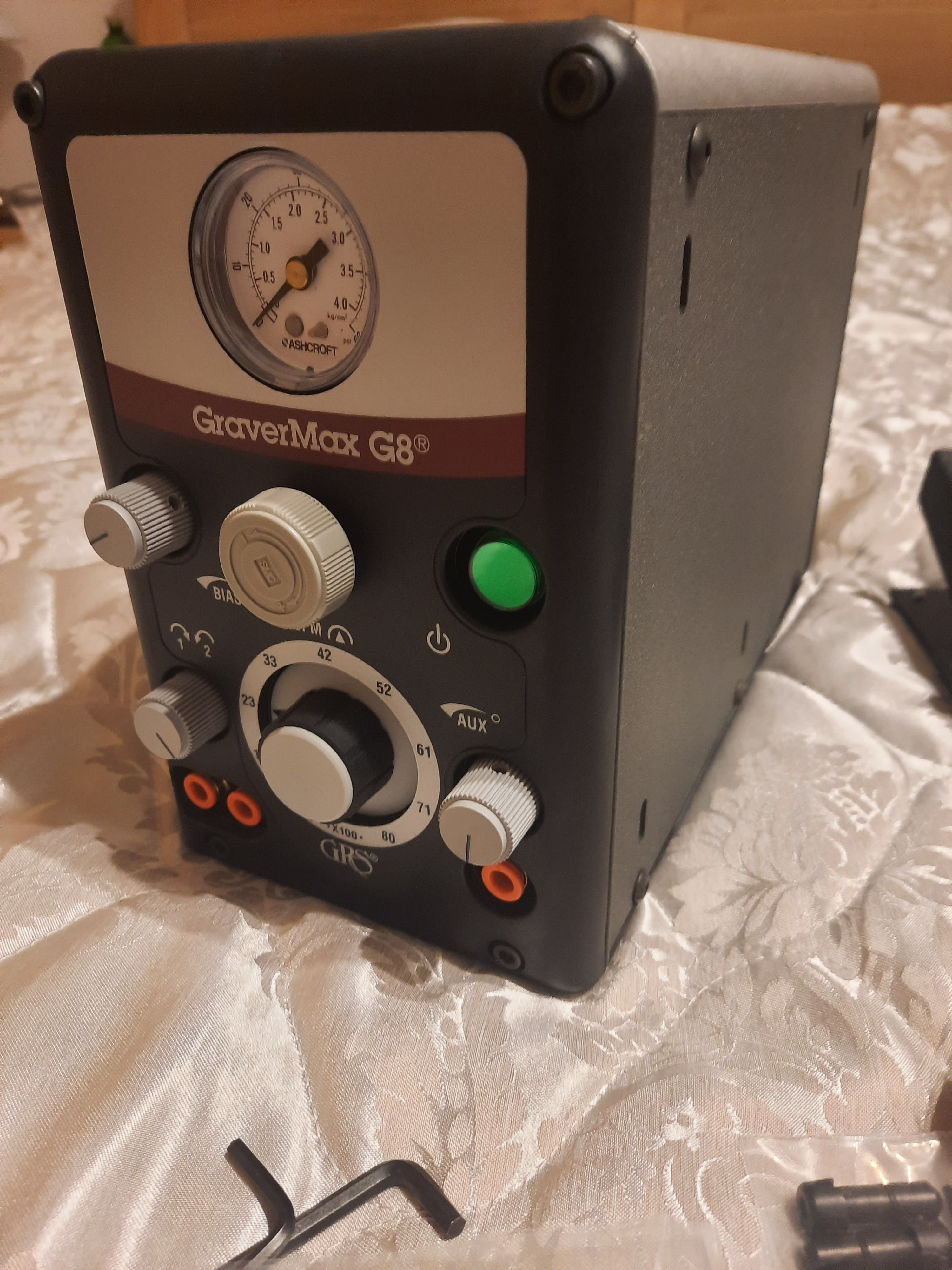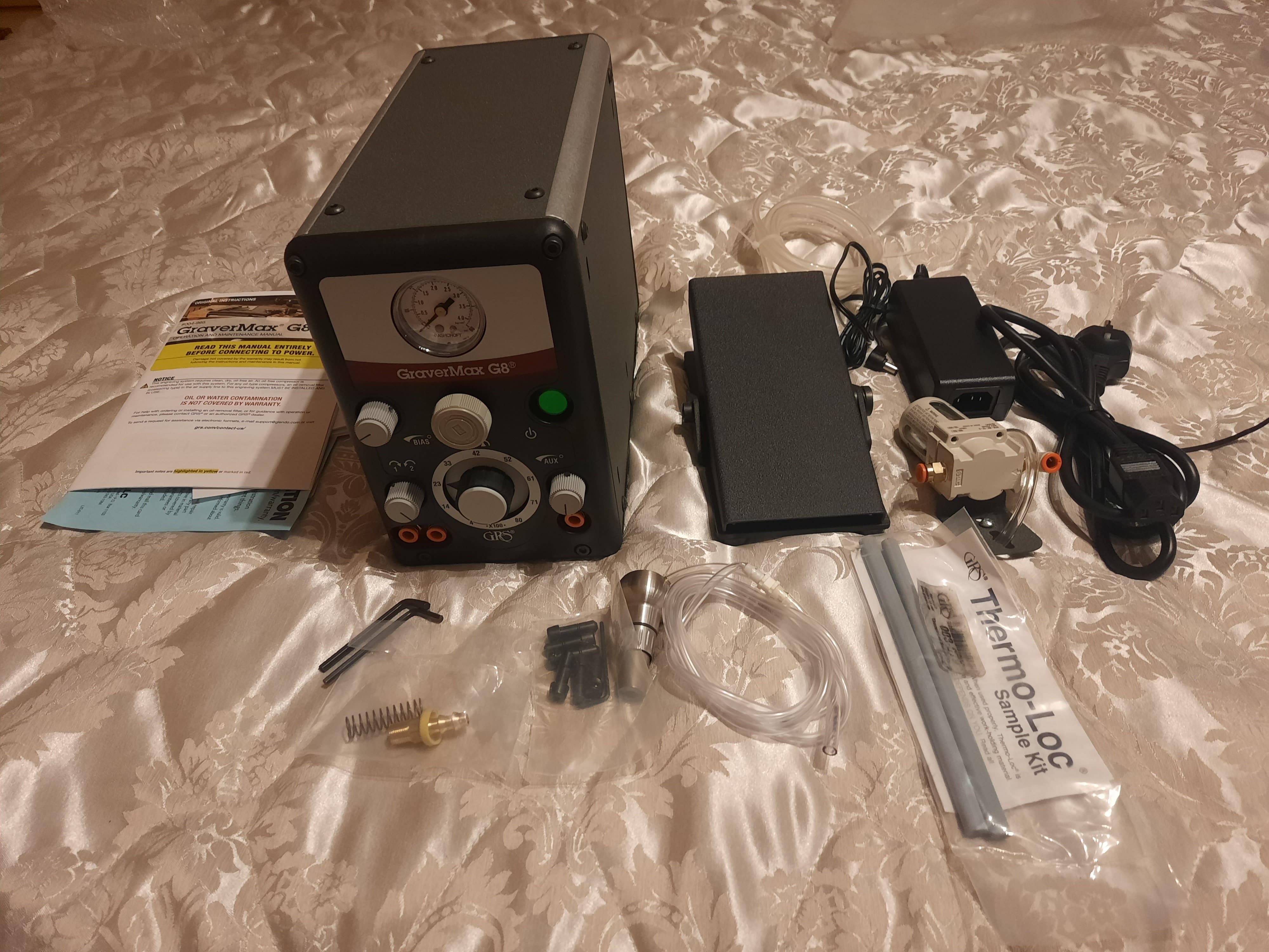 Продам комплект GRS GraverMax G8, оригинальный. Блок + наконечник (901) + педаль + воздушный фильтр, документы. Абсолютно НОВЫЙ, привезён в начале февраля, всё, кроме упаковки (пришлось снять для перевозки). Цена за всё 300 т.руб. находится в Пушкине (СПб). За счёт покупателя отправка в любой город.