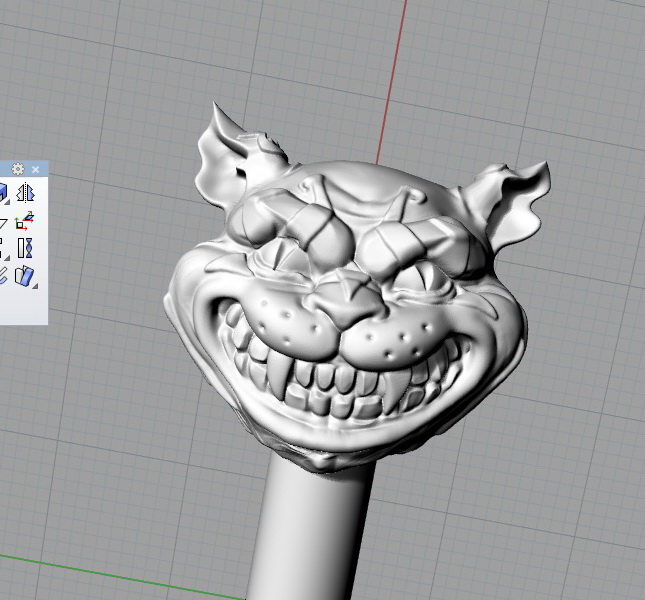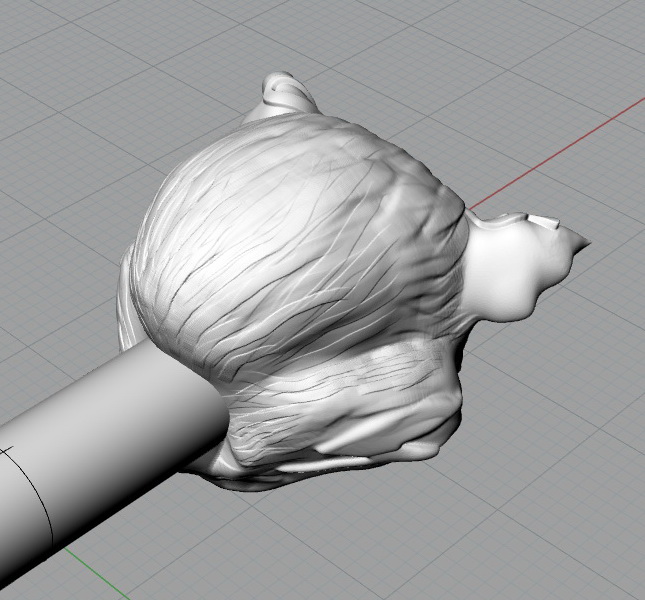 Учитывая масштаб модели, я бы увелилил глубину полосок с обратной стороны головы. В этом виде они будут практически незаметны в финальном изделии.