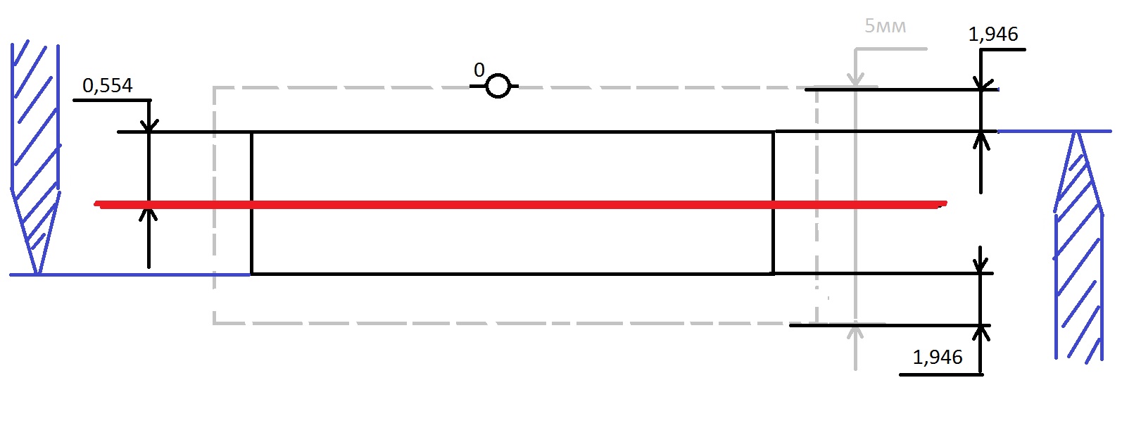 3. в материале указываю приблизительную толщину восковки 6,5 мм, смещение сверху (6,5-2,5)/2 = 2