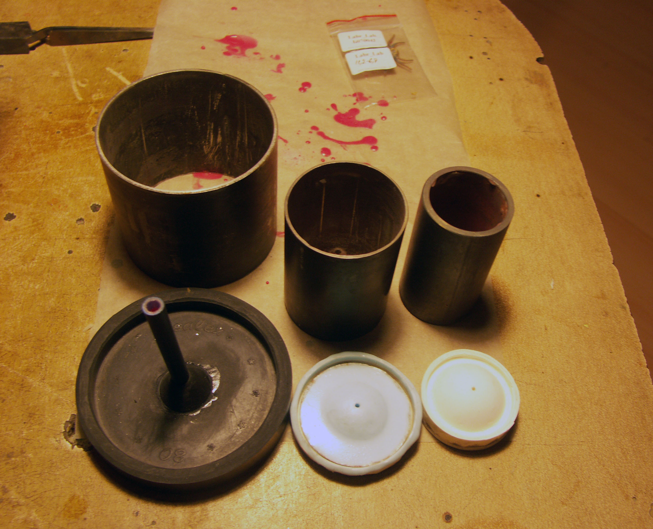несколько тигельков, держатель тегля