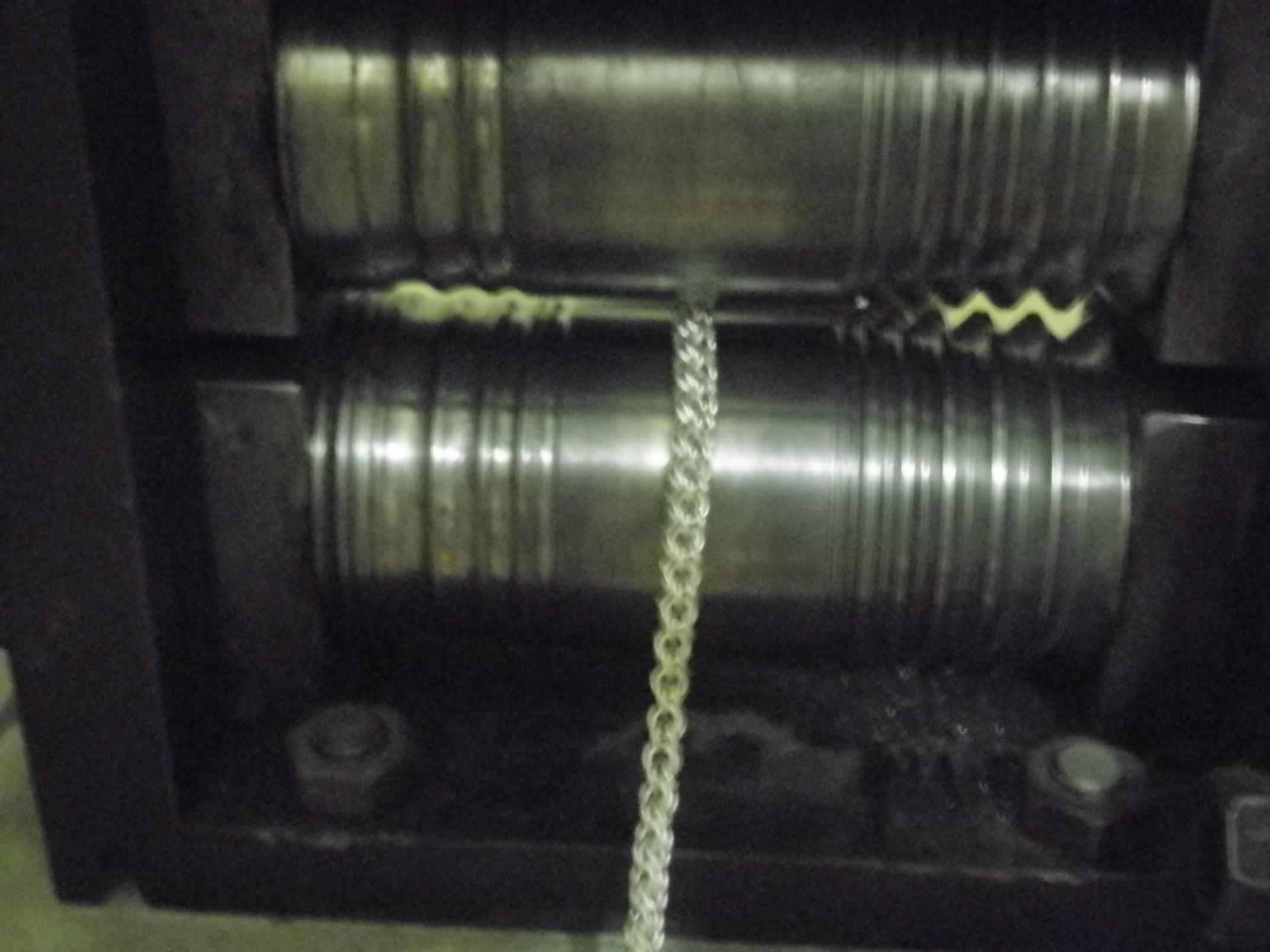 Вальцуем, чтобы цепь не винтила. Главное по чуть чуть..перевальцуешь и кирдык.она винтить будет в другую сторону