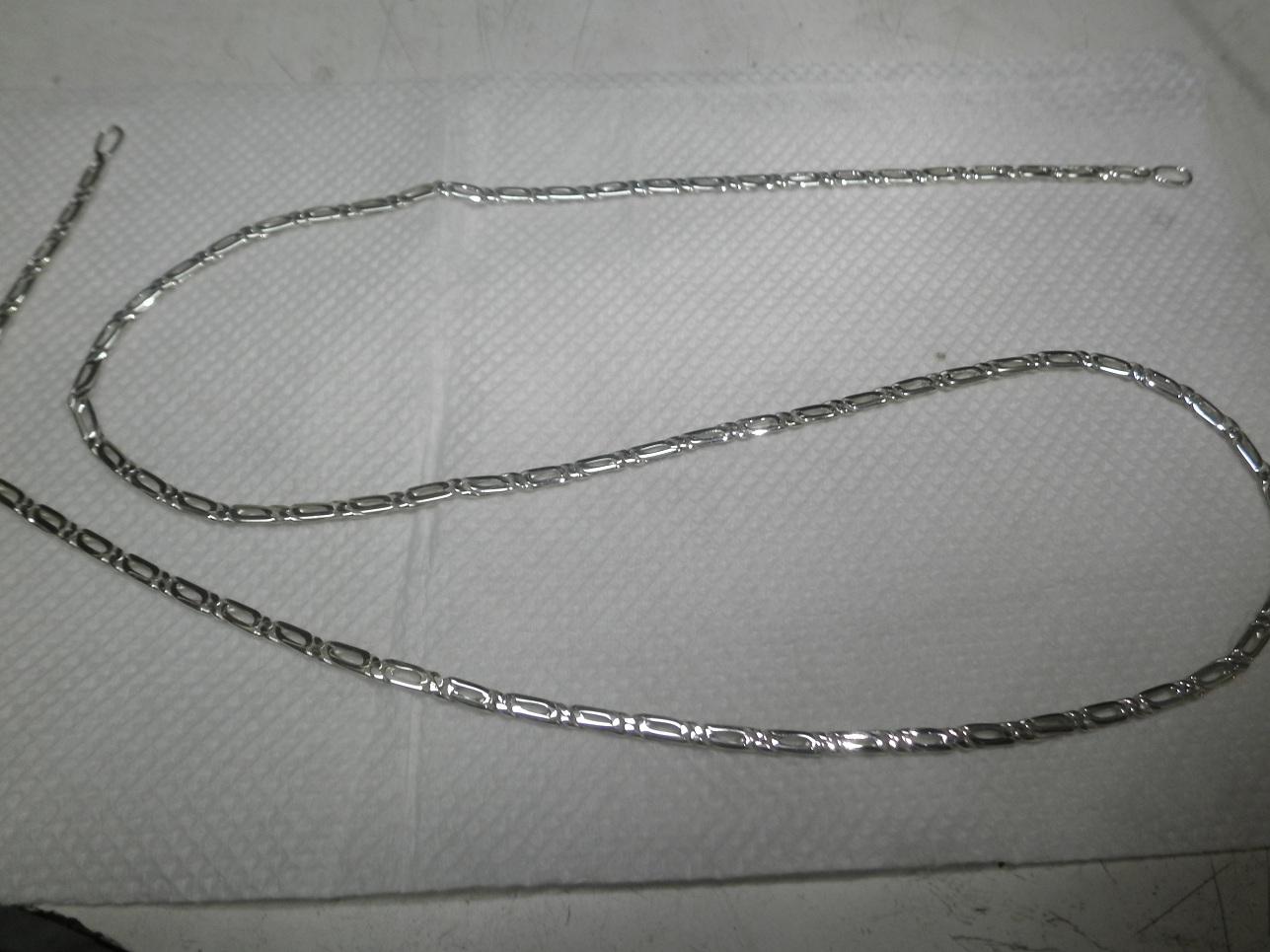 Получаем вот такую цепочку. Теперь нужно срезать по 1 крайнему звену с петельками и припаять концевики, сделать замок и вуаля. Готово.Это вы уже сами:))