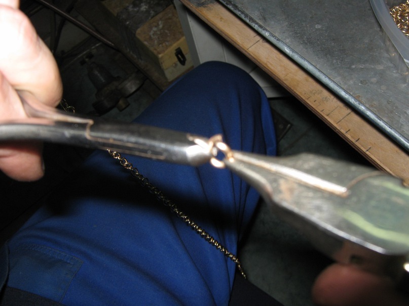 15) оставшуюся половину разводим концы звеньев, чтоб пролазило звено.